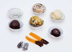 • Smelt sjokoladen over dampbad og dypp skallene, jeg dypper bare halve skallbiten (se bildet). Legg skallene til å stivne på en plate med bakepapir. Oppbevares kaldt.