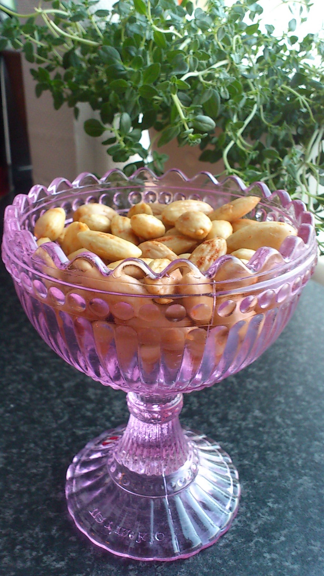 Jeg elsker Marconamandler, men de kan vanskelig å få tak i og relativt dyre. Helmersen bruker å ha dem , men i dag da jeg var innom i Storgata så var dem dessverre utsolgt. Men den hyggelige kokken bak disken ga meg et godt råd. Du kan jo riste mandler selv, sa han. Har jo rista mandler før med suksess, men han ga meg sin oppskrift – så da måtte jeg jo bare hjem å prøve!