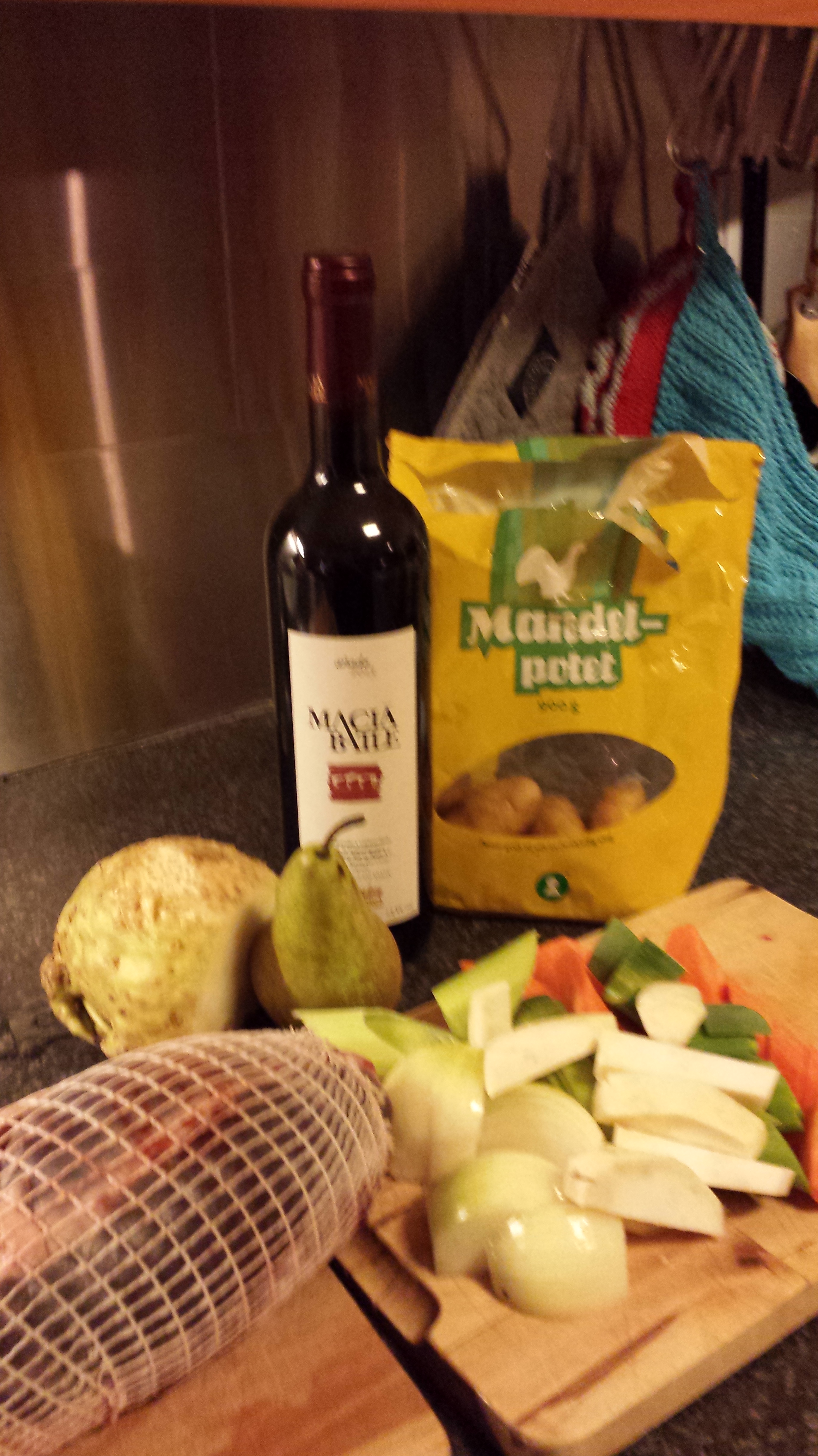 En av julas høydepunkter når det kommer til middag ble dagens reinstek. Jeg laget kanskje ikke det mest «fargerike» tilbehøret denne gangen, men smaken og sammensetningen ble veldig bra! I tillegg til sellerimosen og de veldig gode rødvinskokte pærene hadde vi en nydelig viltsaus med tyttebærsyltetøy og sprøe poteter.