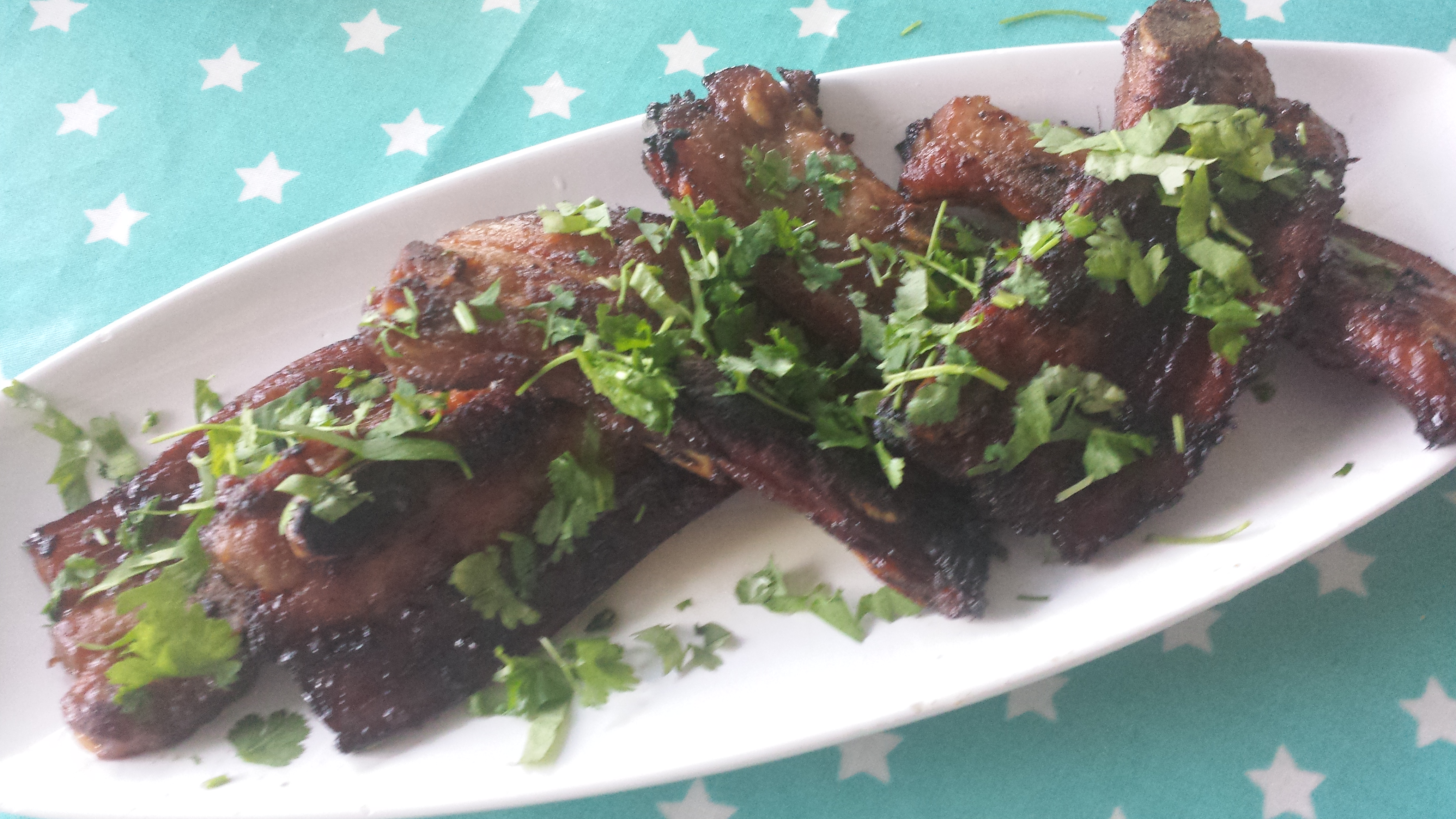 Grillribbene lå i marinaden over natta. Så brunet jeg dem, og hadde dem i ovnen ca. 20 minutter på 200 grader.