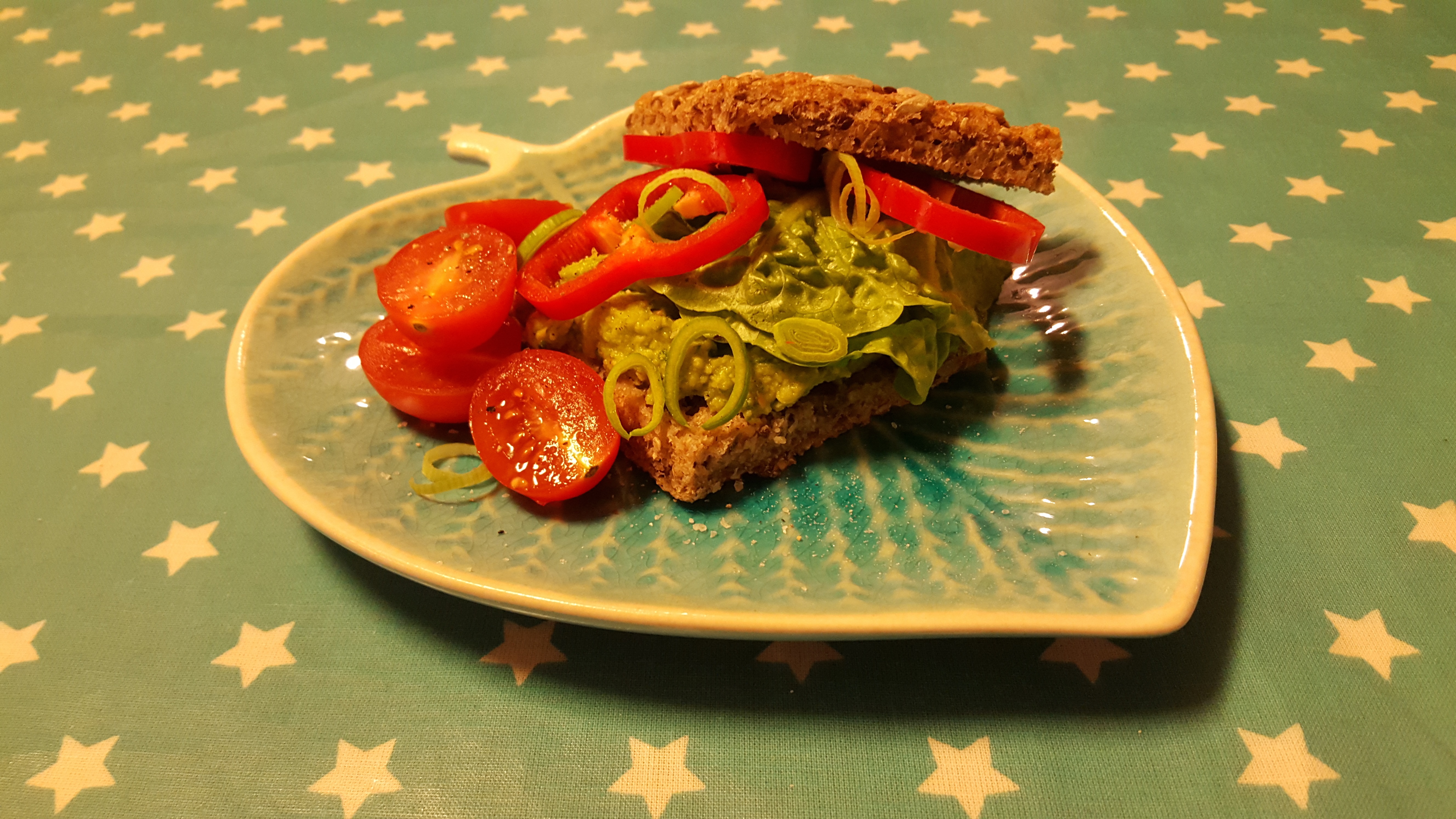 Jeg begynner med en veldig god røre med avokado og kikerter, og et brytebrød, bakt med rug og masse frø og kjerner. Oppskrifta på brødet har jeg hentet fra en brosjyre fra Gogreen som Trine i Trines matblogg har laget sammen med dem. Masse gode tips på sunt & godt å hente der http://gogreen.no/tips-triks/temaer/trines-favorittoppskrifter/