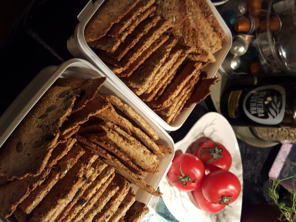Stek knekkebrødene i ca. 30 minutter. Følg med på at de ikke blir brente. Knekkebrødene skal være forholdsvis sprø før du tar dem ut. Legg dem over på en rist og la dem avkjøles.