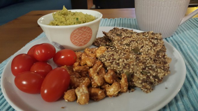 I dag koser æ mæ med nybakte frøknekkebrød med avokadohummus og de farlig gode chili-cashewnøttene. Skikkelig fredagskos!
